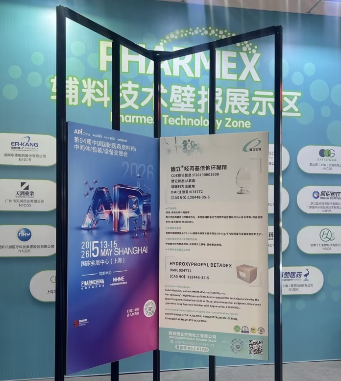 Ghlac Xi'an Deli Biochemical Industry Co., Ltd páirt i dTaispeántas API China 2025 a reáchtáladh i Chongqing, ag taispeáint táirgí suaitheanta na cuideachta—Betadex Hidroxypropil (HPBCD)agusÉitear Sóidiam Betadex Sulfobutyl (SBECD)—do ghairmithe domhanda sa tionscal cógaisíochta agus ceimiceach.