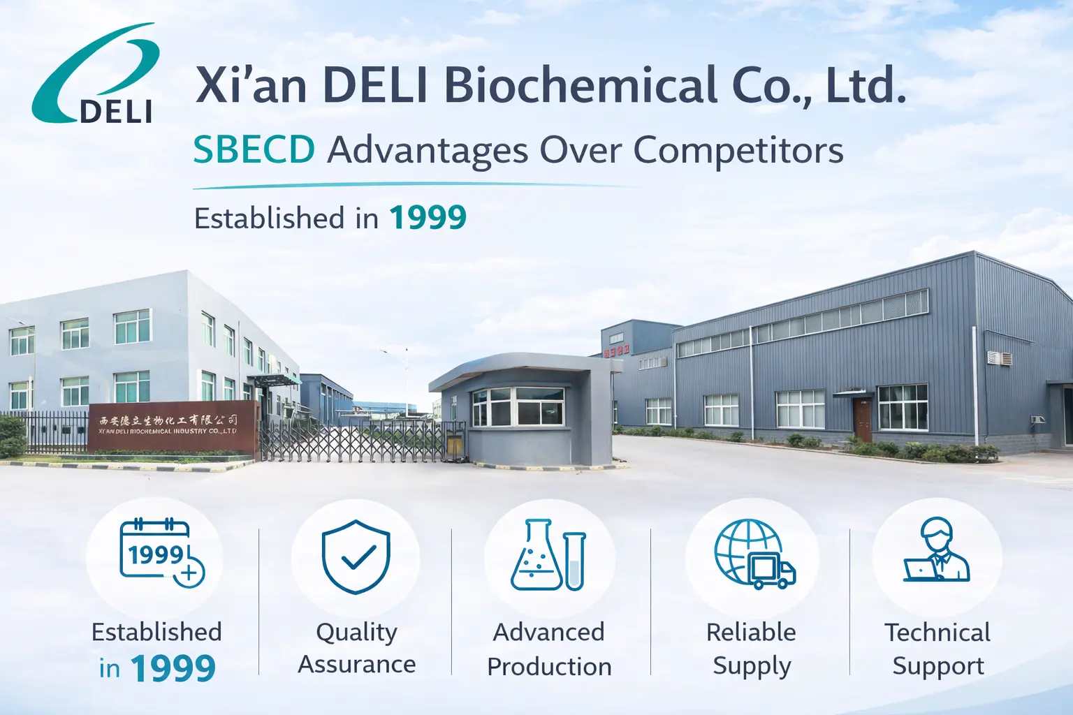 Tá DELI Bithcheimiceach ar cheann de na cuideachtaí is mó a dhéanann Betadex Sulfobutyl Éitear Sóidiam. Déanann siad comhábhair de ghrád insteallta a chomhlíonann na caighdeáin leighis is déine. Is muid an comhpháirtí is fearr chun drugaí nua a fhorbairt mar is mór againn cáilíocht, spleáchas agus sástacht na gcustaiméirí. Is féidir leat buntáiste DELI a fháil trínár gcúnamh teicniúil iomlán agus ár n-iontaofacht soláthair ráthaithe. Déan teagmháil linn ag xadl@xadl.com chun do riachtanais foirmithe ar leith a phlé.